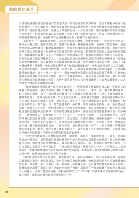 的環境以及空白的記憶。新生訓練當天,天空很藍,太陽很耀眼,但在我的眼中,一切都是