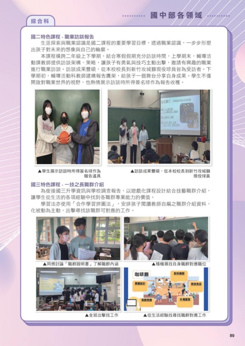 生涯探索與職業認識是國二課程的重要學習目標,透過職業認識,一步步形塑