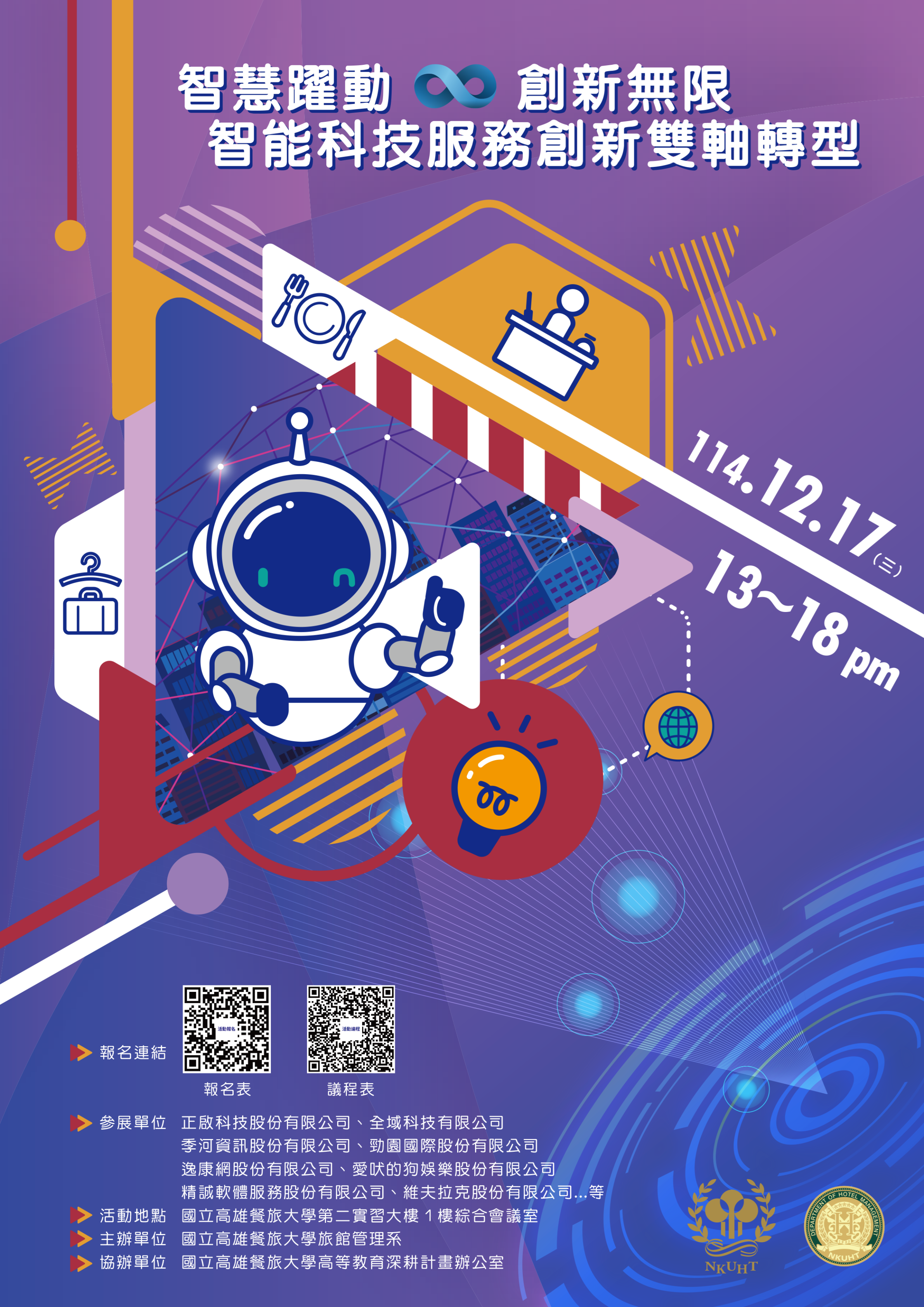 【轉知】高雄餐旅大學「智慧躍動 ️創新無限-智能科技服務創新雙軸轉型」