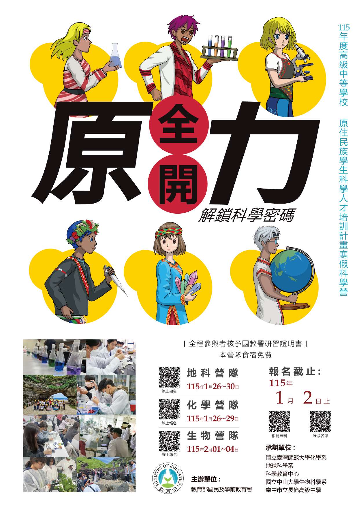 【轉知】115年度高級中等學校原住民族學生科學人才培訓計畫