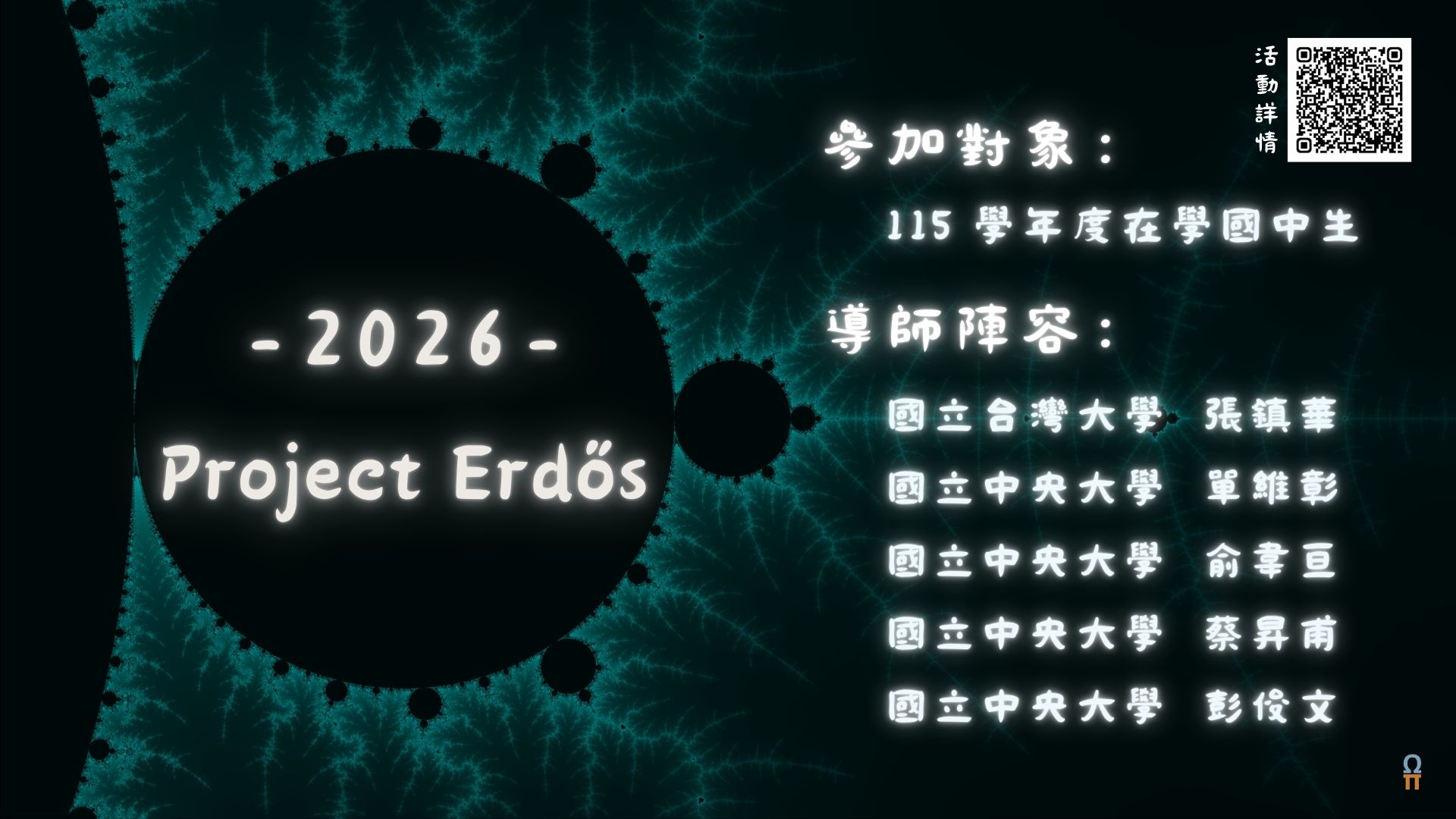 (三) 報名方式:報名至115年3月31日(二)止,報名網址:https://ps1tw.astro.ncu.edu.tw/ttss/index.php/2026-project-erdos/。