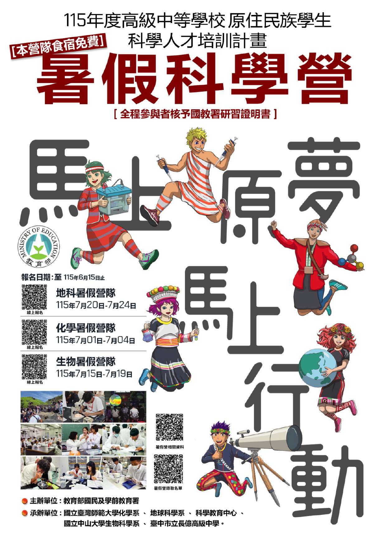 三、 檢附生物、化學、地球科學等暑假培訓活動簡章及宣傳海報各1份。