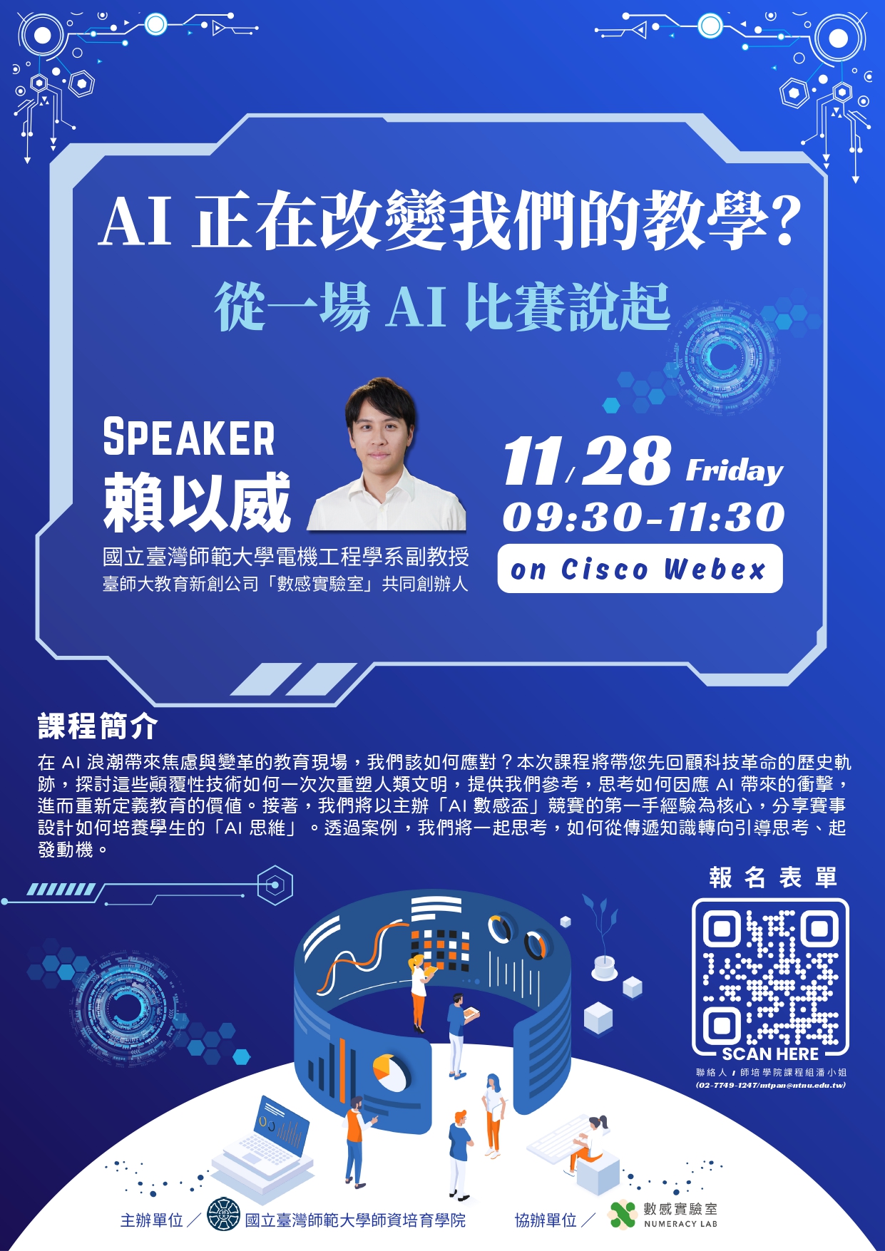 (二) 講師:賴以威(國立臺灣師範大學電機工程學系副教授暨「數感實驗室」共同創辦人)。