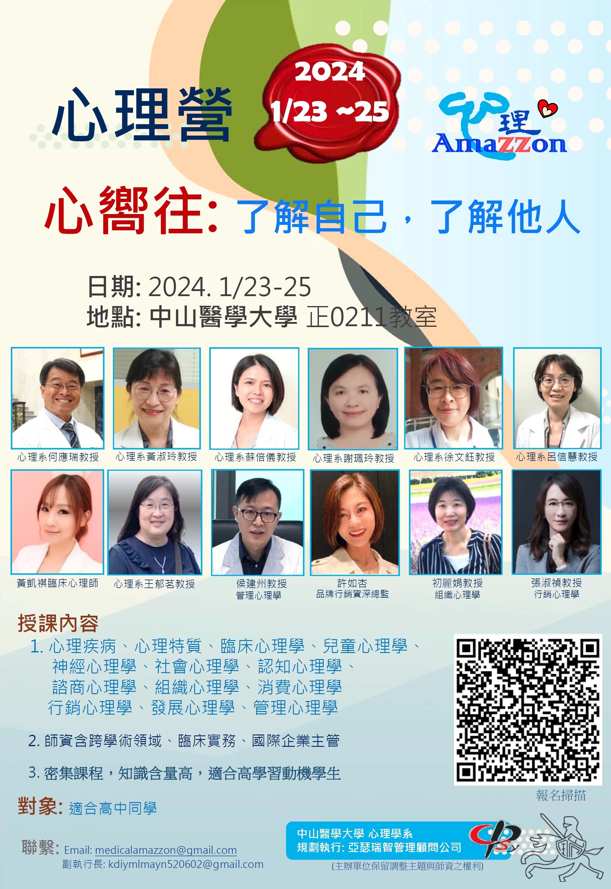 | 一、 | 營隊主題:高中心理營—心嚮往:了解自己、了解他人。 |