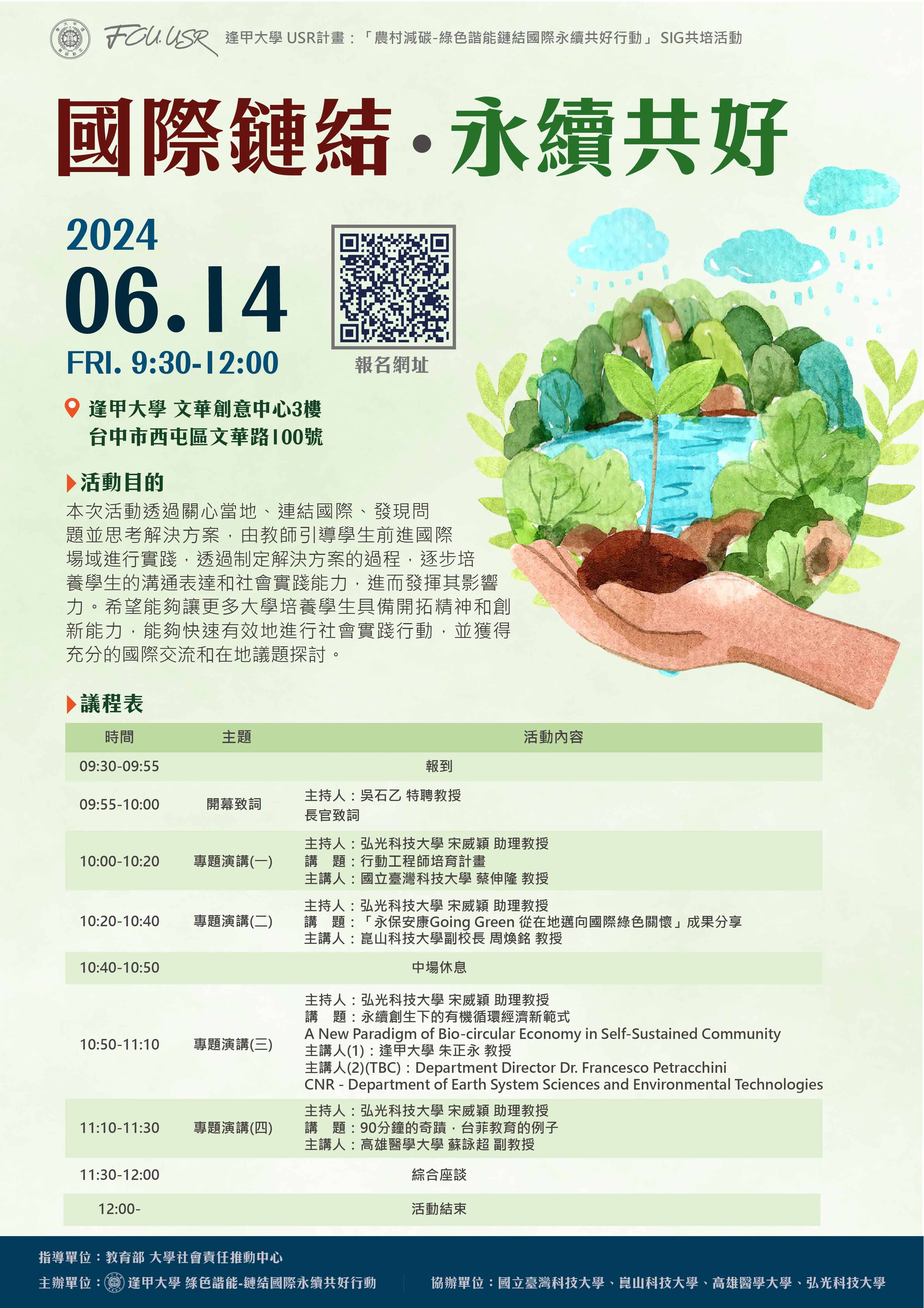 三、旨揭專題演講活動將邀請USR國際合作型計畫夥伴學校,分