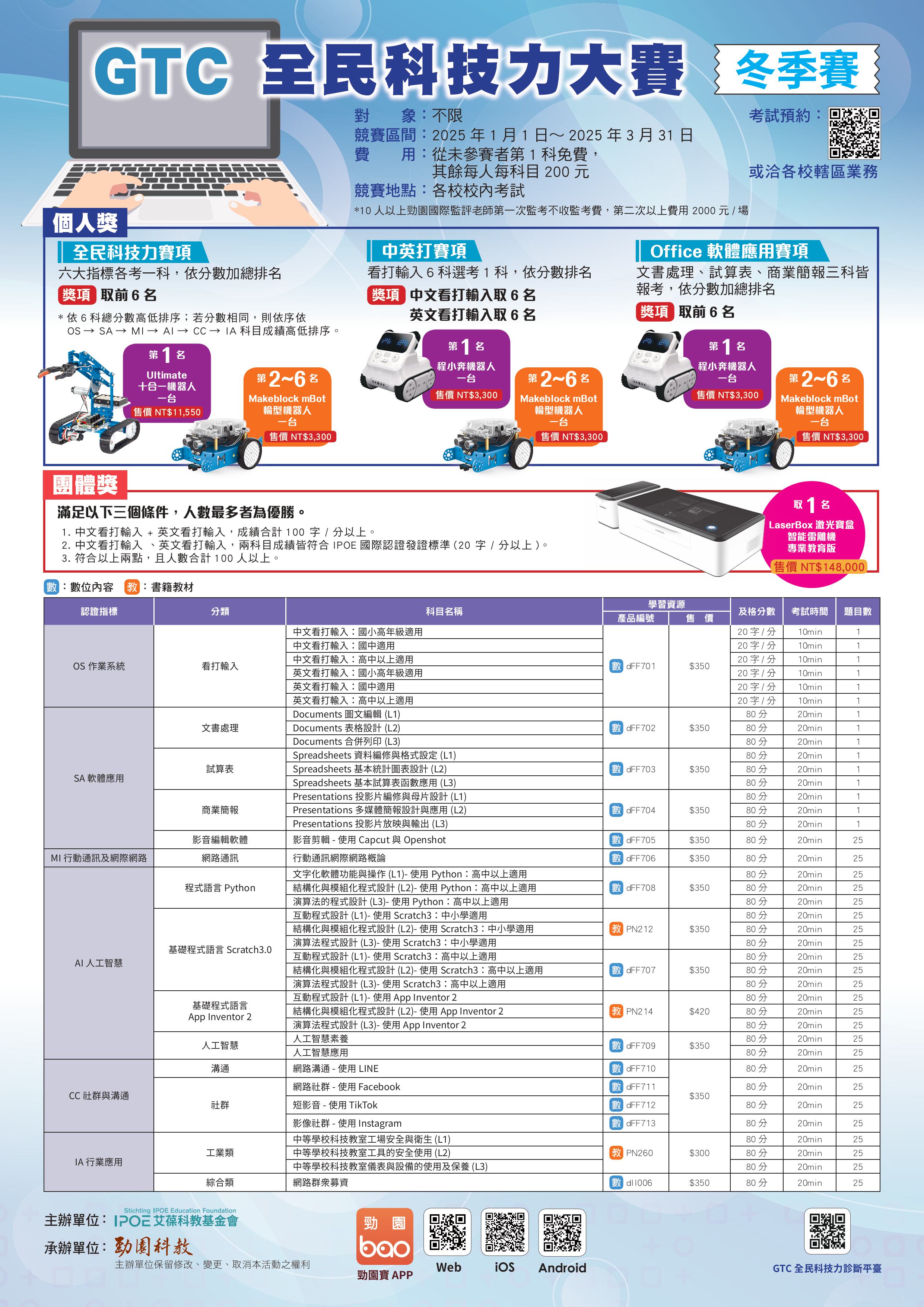 | 四、 | 競賽活動辦法、評分規則等說明,公告於活動網站:https://spcrq.ipoe.cc/gtc2025w |
