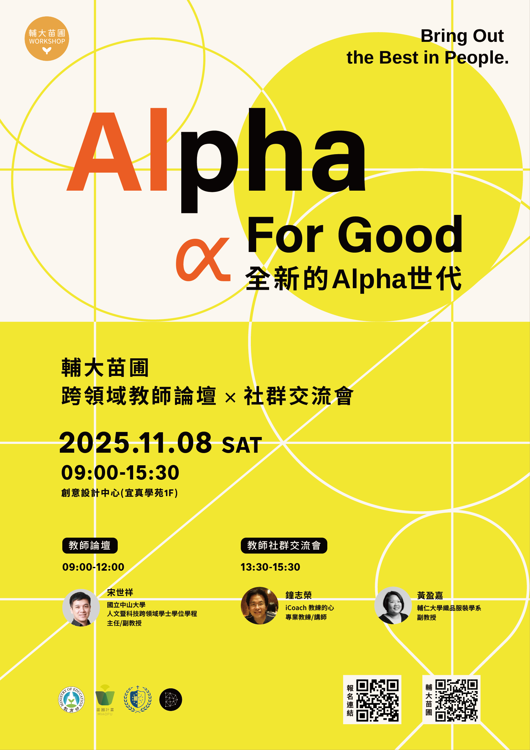 一、 | 活動目的:本活動由教育部「跨領域教師發展暨人才培育計畫」補助辦理,活動邀請國立中山大學宋世祥主任、iCoach教練的心鐘志榮教練及輔仁大學黃盈嘉副教授共同分享,探討AI時代下的跨域合作、創新教學與設計思考實踐。 |