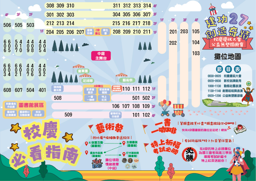 【園遊會地圖這裡】 精彩闖關路線、各班級攤位巡禮,一起來感受這快樂的氛圍吧!