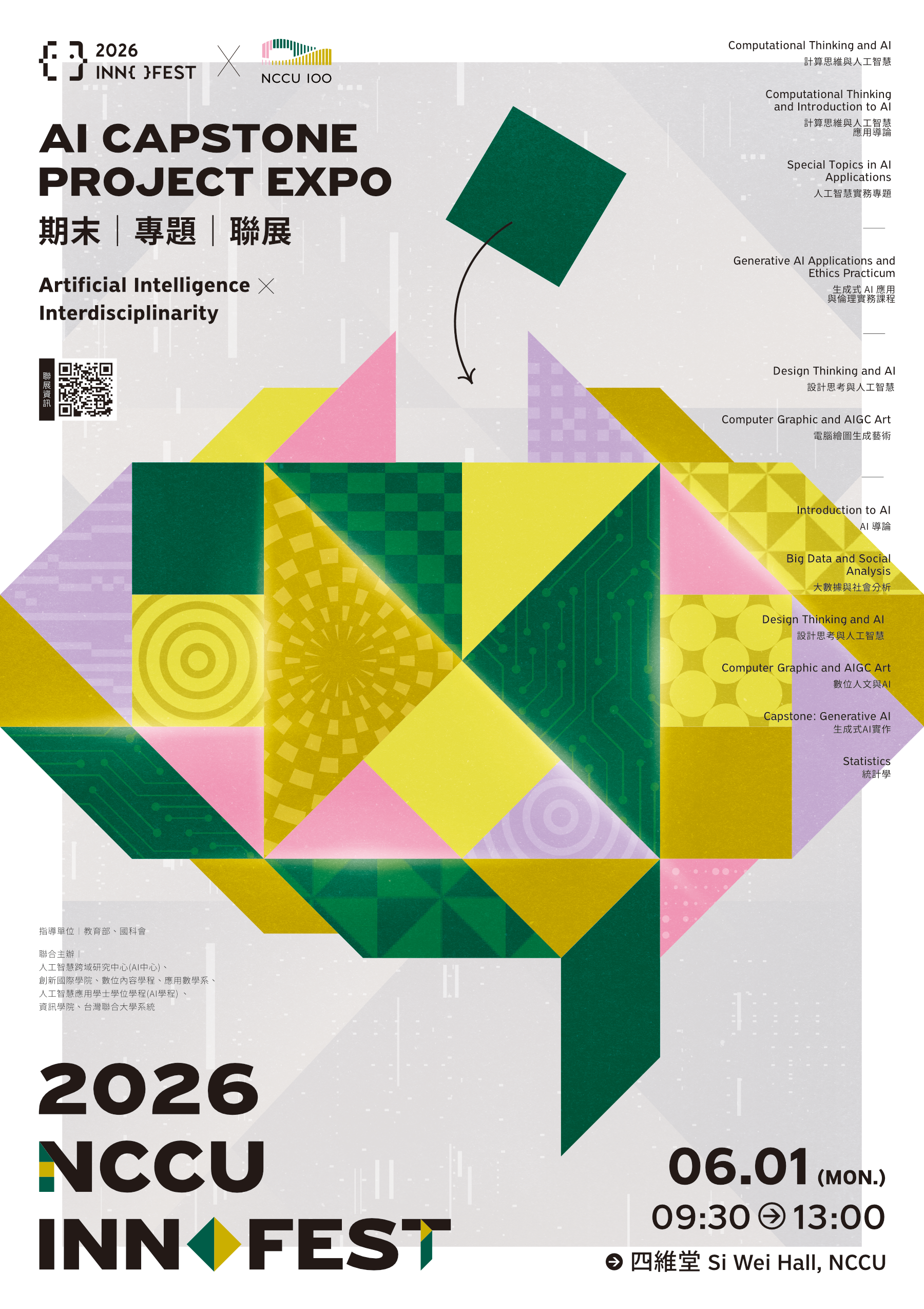 | 四、 | 聯展資訊:日期:115年6月1日至6月3日。(6月1日9時30分至下午13時為學生現場展示解說,6月1日13時至6月3日12時為靜態海報展);地點:政治大學四維堂。 |