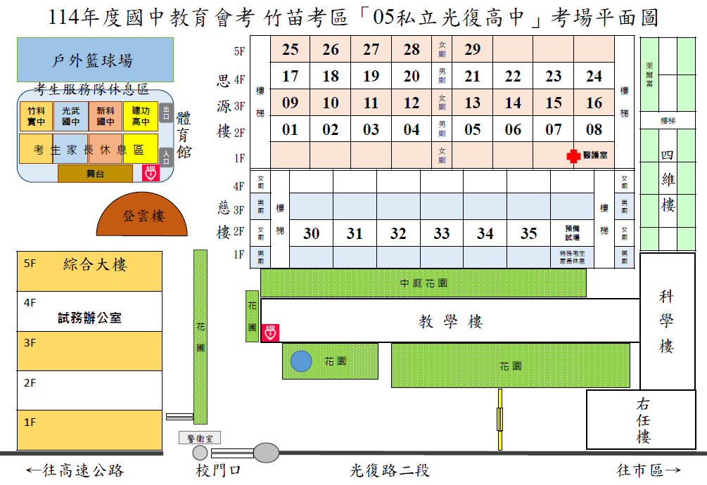 光復高中體育館(請由正門口進校後依考場學校安排指示前往)