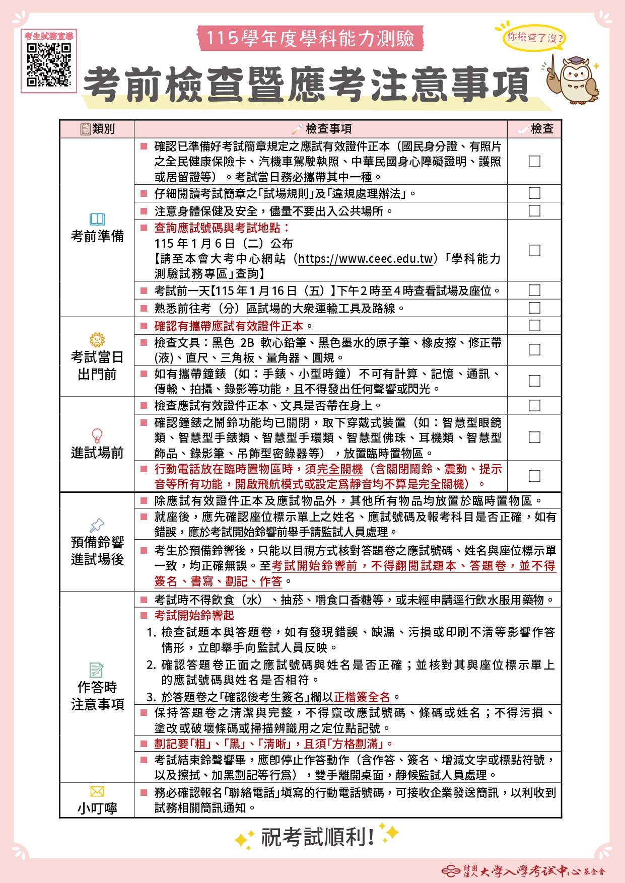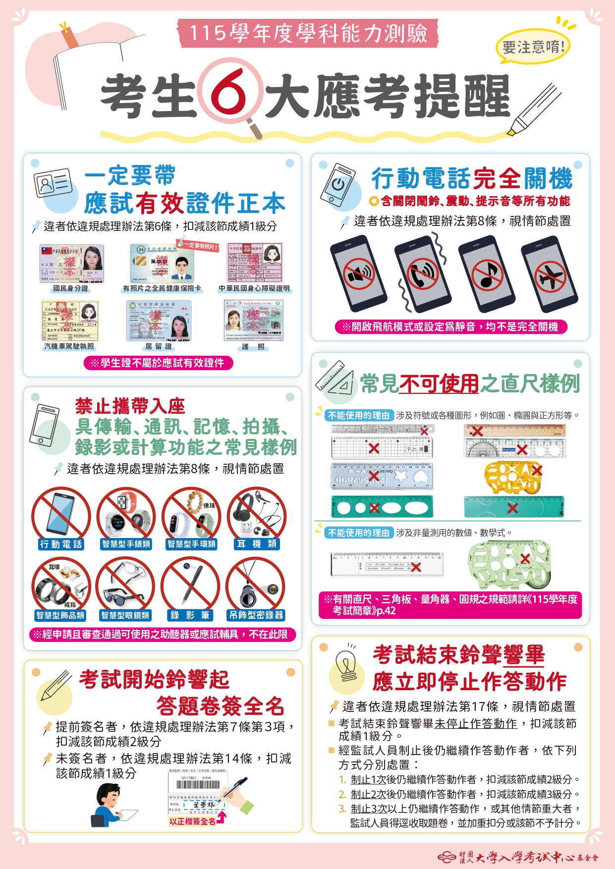 【應考須知】其餘重點提醒事項請參閱大考中心發布之圖表,如下圖: