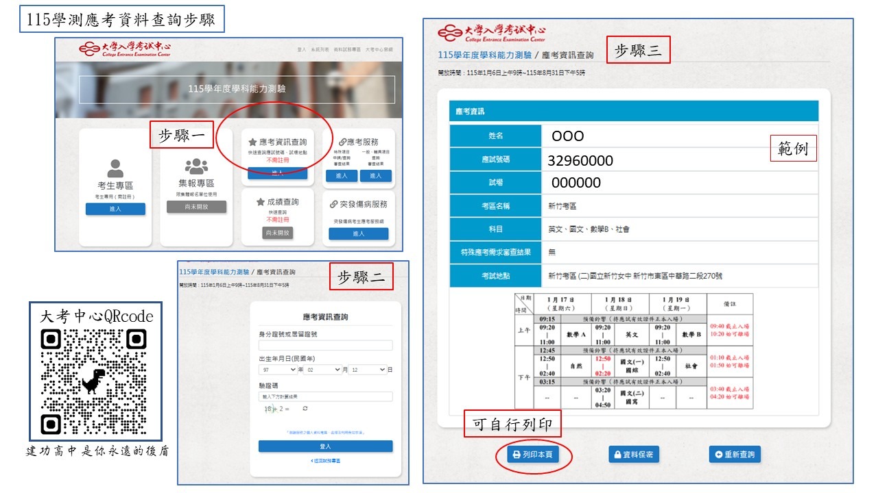 所有考生於1/17至1/19測驗期間,因已無入場識別證、也沒有准考證(107學年度起已無准考證):請同學務必記得考試當日攜帶